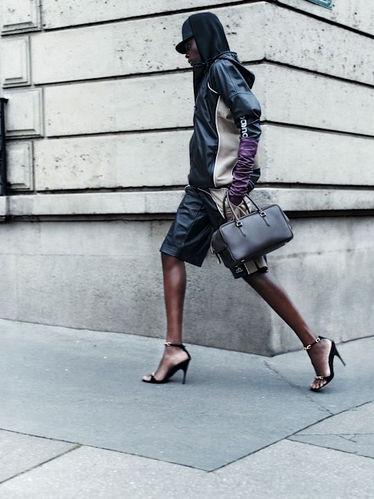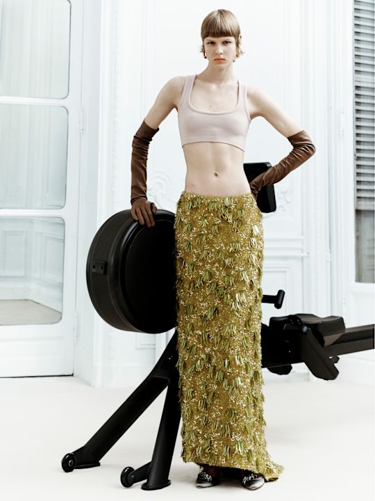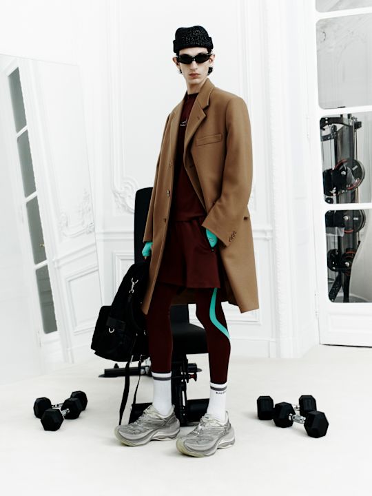 Scenografija nalik luksuznoj kućnoj teretani nije slučajna. Ovo je Balenciaga za telo koje se kreće, znoji, živi i postoji van Instagrama. Tech-wear koji Piccioli predlaže nije futurizam kao kostim, već kao alat: bodiji i helanke koji prate siluetu poput druge kože, patike koje zaista mogu da izdrže pokret, komadi koji ne traže objašnjenje jer imaju jasnu svrhu. U vremenu u kojem moda proizvodi višak bez značenja, ovde se insistira na razlogu postojanja.
