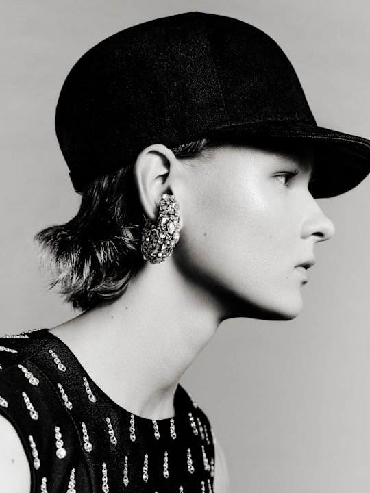 Najdiskutabilniji, ali i najpametniji gest kolekcije je povratak visokog jahačkog šešira, sada sveden na formu bejzbol kačketa i uparen sa skulpturalnim šalovima. To nije pokušaj da se ulica „uzdigne“, već da se prizna da je ona već deo visoke mode. Bez cinizma, bez distance. Samo kao činjenica.