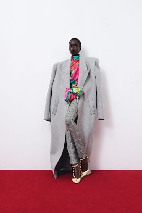 Bodycon siluete ustupaju mesto za oversized kroj s inovativnim vunenim detaljima, često uparivanih uz mini suknje i šortst koji se igraju proporcijama. Kaput s Monetovim printom, za koji kažu da je dovoljno prostran i za Airbnb, odaje počast umetničkoj strasti osnivača kuće. Čizme s debelim petama dolaze u varijantama od shearlinga i kože, nose se uz donji veš, dok kaputi u breskva i limun nijansi odišu luksuzom i udobnošću.