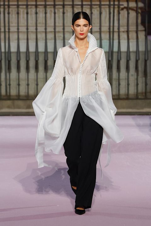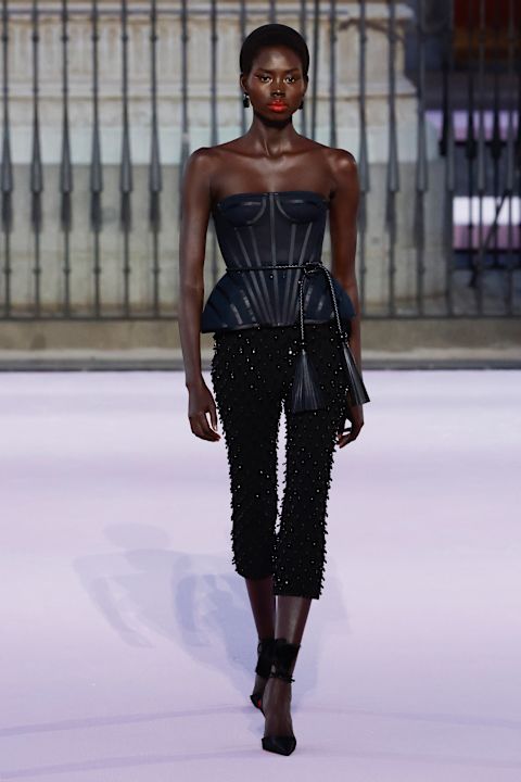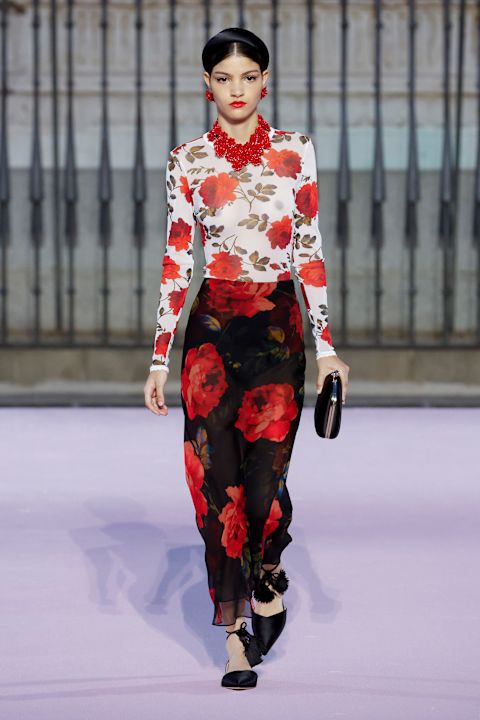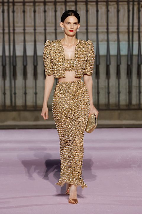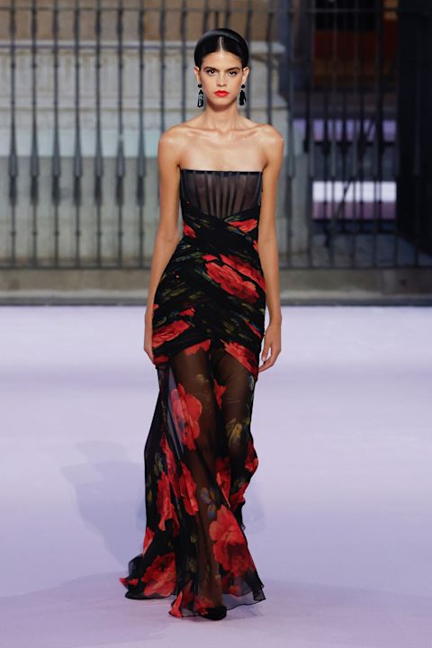 Otvaranje revije obeležila je grandiozna crna balska haljina, dok je ostatak kolekcije doneo 77 silueta u kojima su se smenjivali volumen suknji do gležnja, pantalone inspirisane toreadorima i krojevi koji osvežavaju stil kuće.