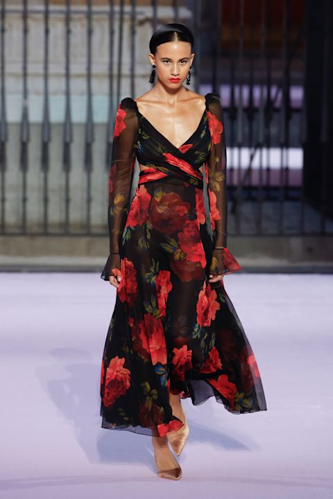 Carolina Herrera kolekcija za proleće/leto 2026. stigla je u Madrid i spojila Zlatno doba Španije i pokret Movida kroz raskošne krojeve i cvetne motive.