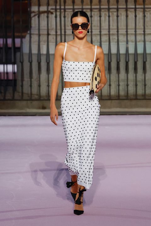 Wes Gordon, kreativni direktor modne kuće, transformisao je istorijski Plaza Mayor iz 16. veka u pistu dugu 450 metara, osvetljenu u prepoznatljivoj Herrera nijansi roze.