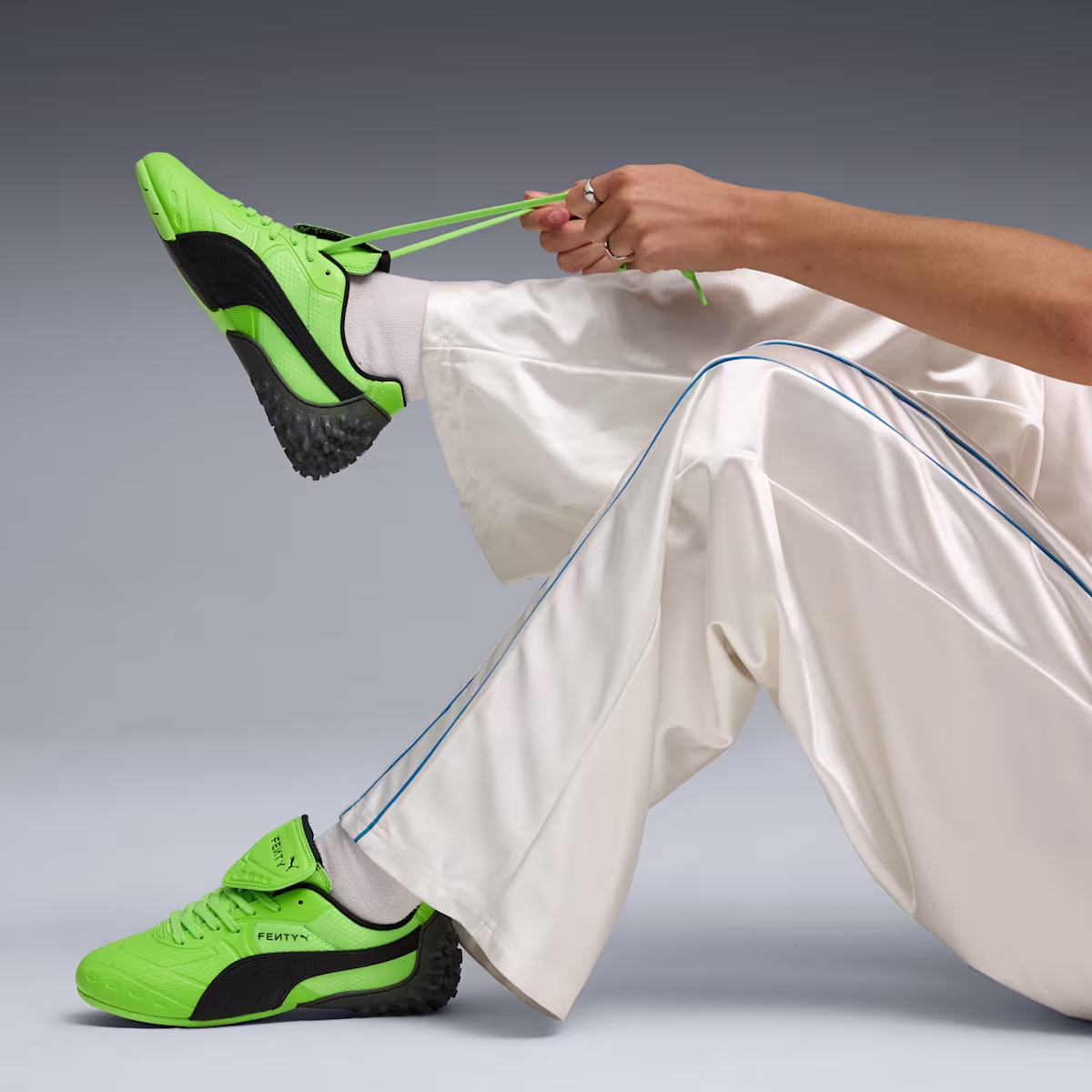Ovog puta, tema je fudbal, ali viđen kroz FENTY, gde se sport susreće uz luksuz, futurističke linije i neodoljivo opušteni pristupom modi. Paleta je sve samo ne obična: narandžasta, zelena i srebrna osmišljene su da privlače pažnju bez obzira gde se nalazite – na terenu, ulici ili plesnom podijumu.