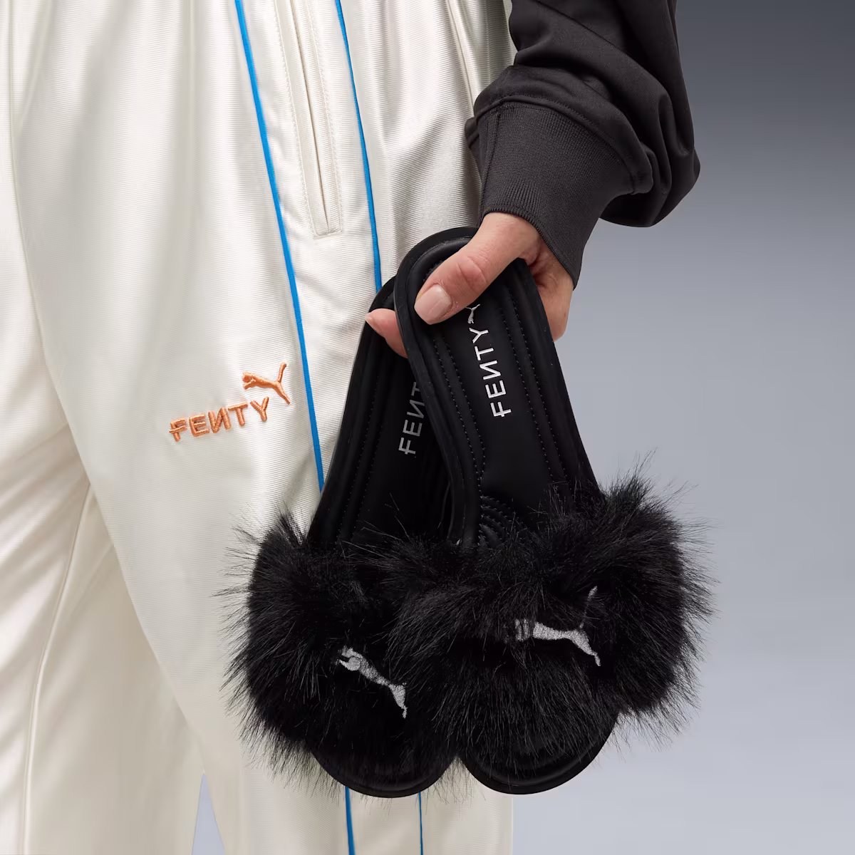 Kultne FENTY x PUMA Slide papuče vraćaju se u novom izdanju, uz fudbalski twistom. Inspiracija su bile PUMA Striker i dolaze s detaljima u formi krampona, sa gumiranim međuđonom i luksuznim kaiševima od kože. Jedna verzija uključuje i mekano veštačko krzno, uz metalik aksente koji odišu prepoznatljivim effortless glam stilom, koji Rihanna nosi bez greške.