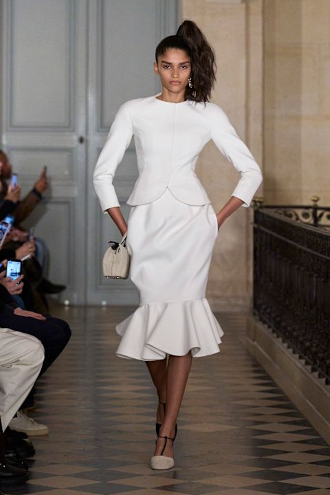 Kaputi u midi dužini uz naglašene kukove i suknje koje se otvaraju u precizno plisirane porube, deluju kao svesno udaljavanje od ranije sklonosti ka dramatizaciji forme. Blejzeri bez revera, sa raglan konstrukcijom i istaknutim strukom, nose određenu ozbiljnost, ali ne gube na senzualnosti. Naprotiv. Upravo ta suzdržanost čini ih tako zavodljivim.