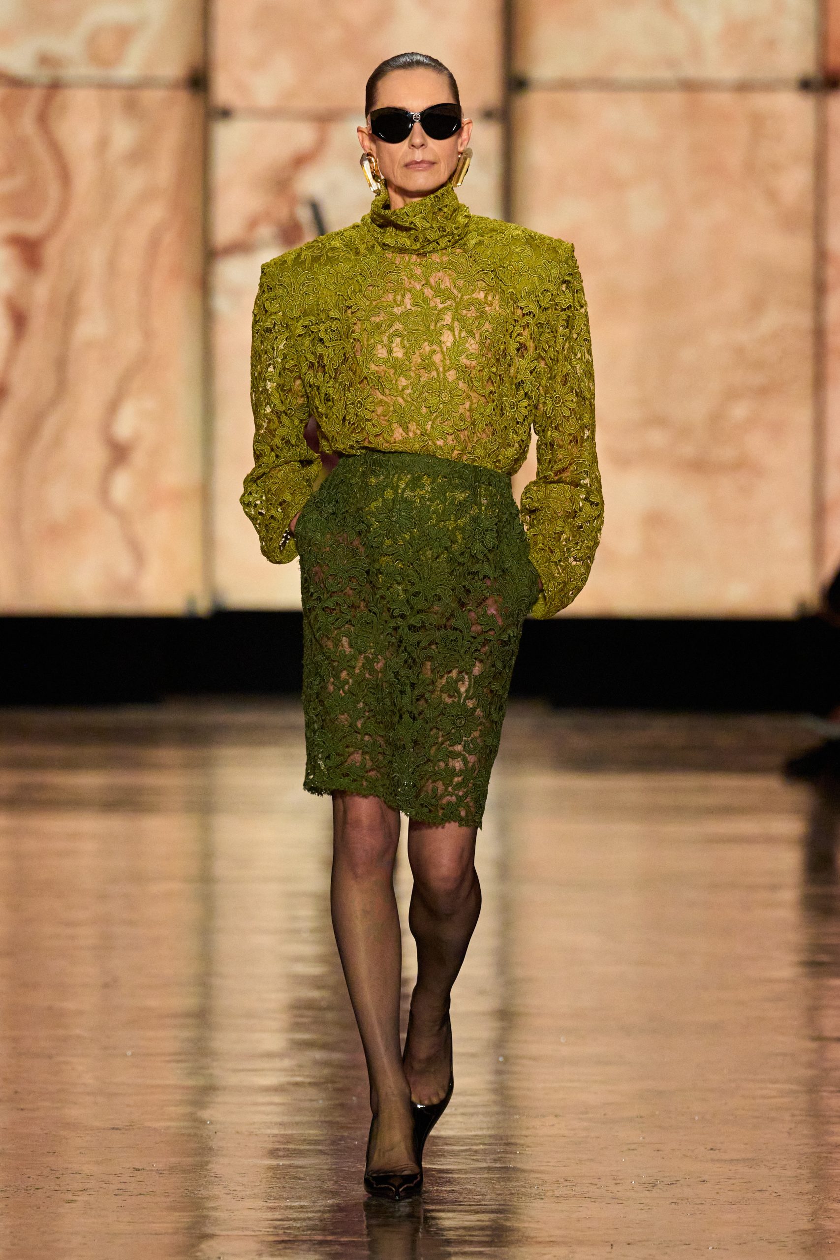 Zelena ove zime ne dolazi samo u dubokim tonovima. Nežne nijanse pistaća i žačfije osvajaju modne piste, donoseći dašak prozračnosti u teške zimske tkanine. Ovi tonovi deluju ženstveno, meko i savršeno za dnevne odevne kombinacije. Naročito kada se uklope s vunom, svilom ili čipkom, kako nam je to Gucci pokazao na reviji.