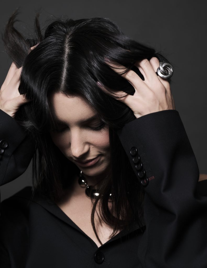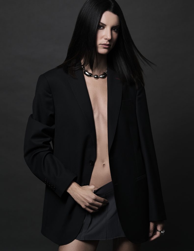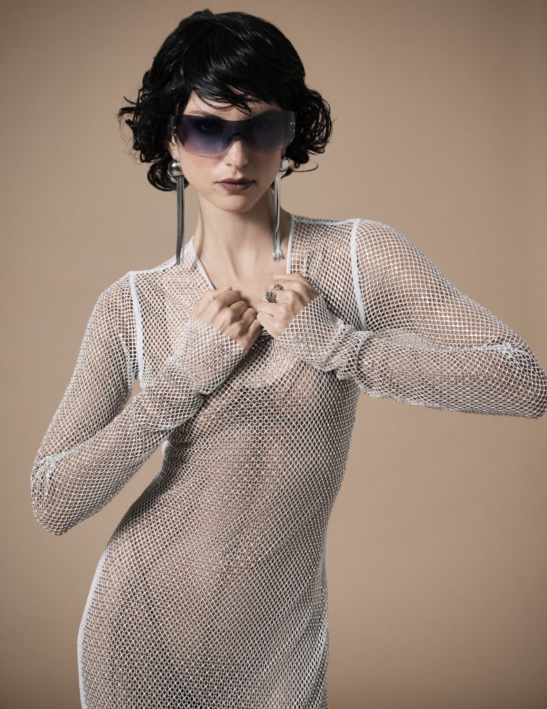 Beneath the surface of this tailored perfection lies a kinetic and almost feral energy. The styling by WonderMafe masterfully navigates this friction by layering the second-skin comfort of Skims with the avant-garde daring of La Petite Mort. The result is a study in textures. The gleam of metallic gold trousers by Alexander McQueen catches the light while the intricate netting of a mesh dress reveals the body in fragments. It is a wardrobe for the woman who is unafraid to dismantle the expectations placed upon her as she moves fluidly between moments of stoic composure and expressive release.