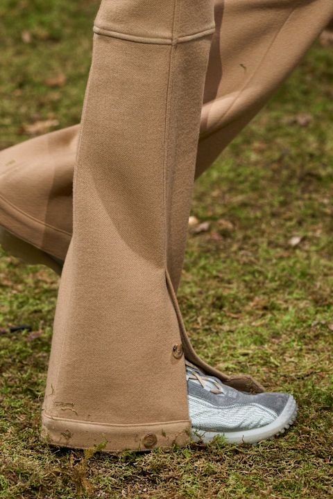 Uz elegantnije modele, na pisti su se pojavile i robusne radničke čizme od kože sa pertlanjem, sa namerno iznošenim izgledom. Taj detalj diskretno se nadovezuje na temu ženskog radnog garderobera koja je bila prisutna u prethodnim kolekcijama brenda.