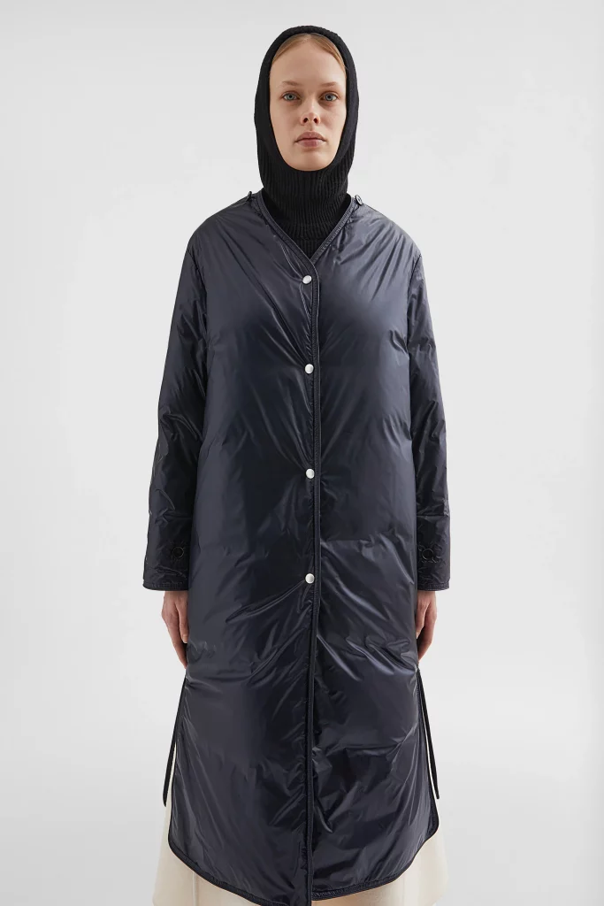 A ključni komadi pokazuju koliko je saradnja precizno izvedena: Penguinone Reversible Short Down Jacket jakna koja poseduje savršeni volumen, reverzibilni dizajn i toplo punjenje koje je istovremeno neverovatno lagano. Ovo je primer kako Meieri manipulišu siluetama tako da puf postane sofisticiran, a ne težak i prenaglašen.