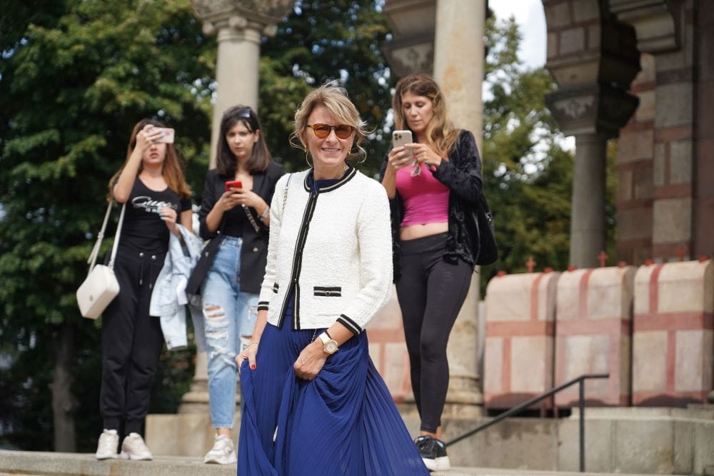 Stil Dijane Đoković ima dobro poznati Chanel vibe koji je prepoznatljiv po klasičnim kompletima od tvida ukrašenim čuvenim dugmićima i džepovima u predelu grudi.