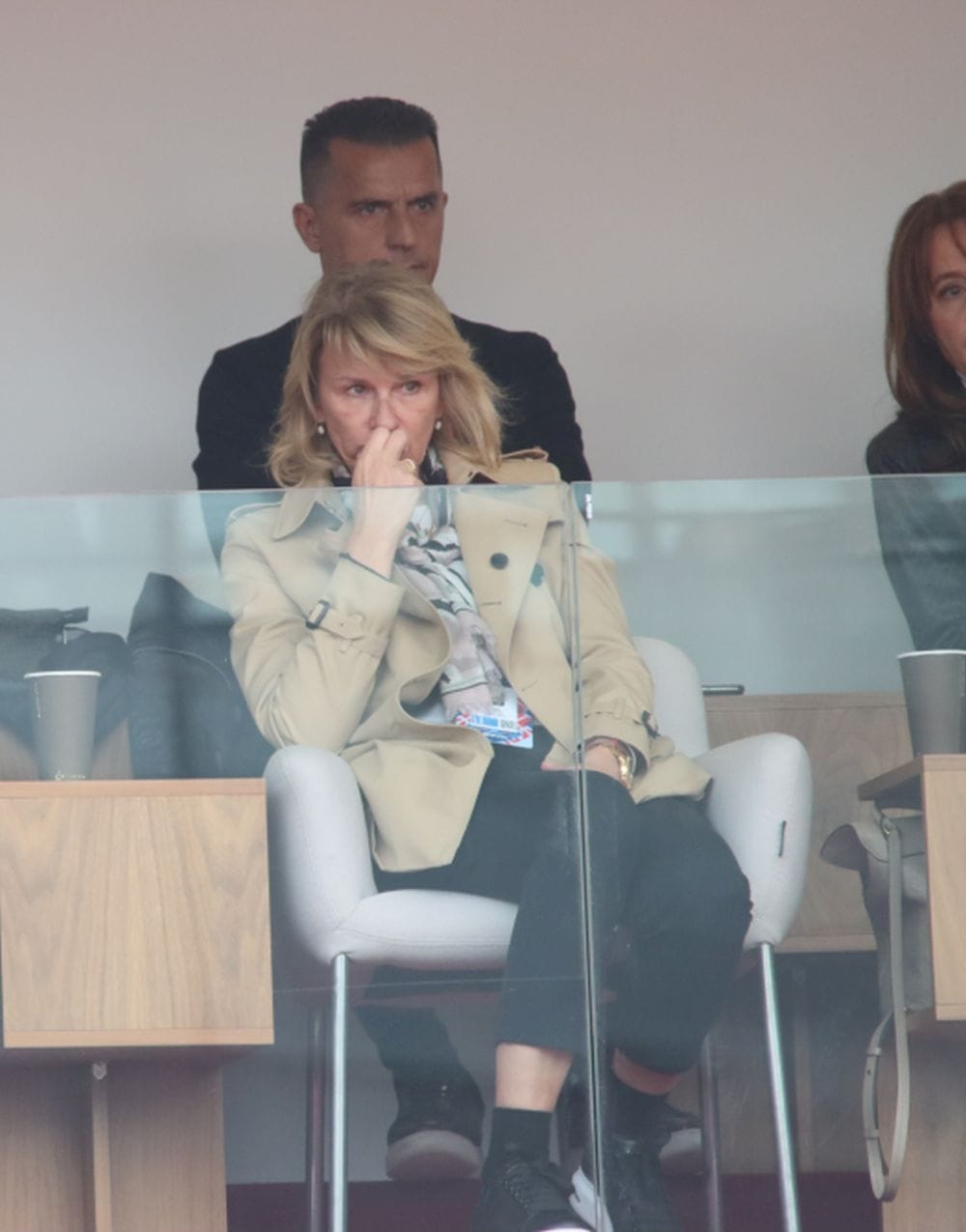 Uz elegantne crne pantalone uklopila je svetlu bluzu preko koje je ponela trenč mantil, a čitav stajling upotpunila je ešarpom u svetlim tonovima.