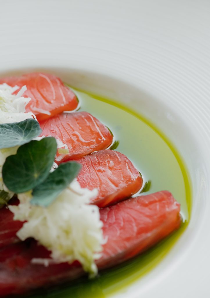 Kuhinja se oslanja na sezonske namirnice, ali ih vodi u neočekivanom pravcu, dok su puter i dim jezik koji sve povezuje.