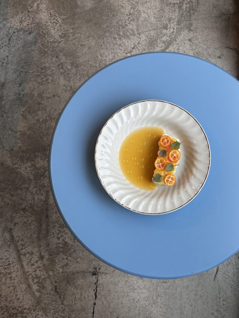 Biskvit, vanila krem, kumkvat, sirup aperitivo