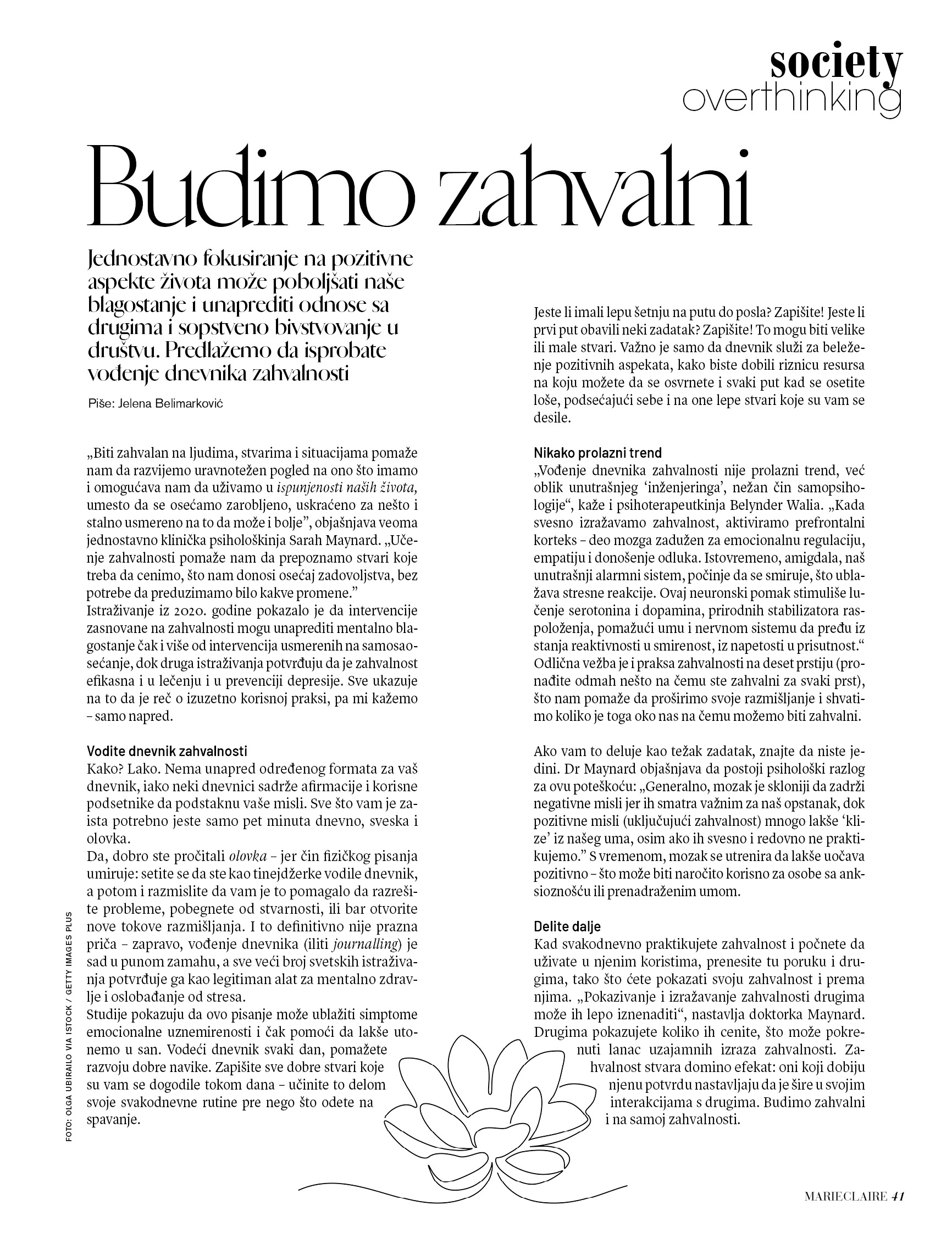 Da li vodite dnevnik? Ako kroz misli iznova premotavate negativne situacije, ova vežba pomaže da proširimo svoje razmišljanje i shvatimo koliko je toga oko nas na čemu možemo biti zahvalni.