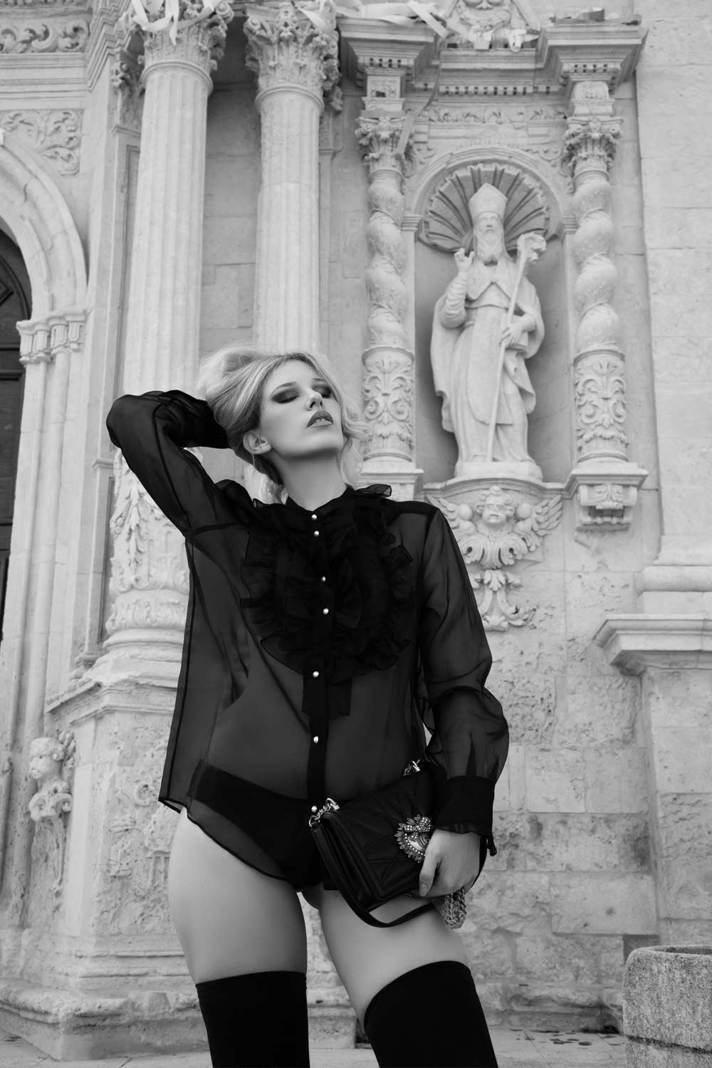 My all-time favorite brand is Dolce&Gabbana, so I am more than enthusiastic to have done this shoot in full Dolce&Gabbana looks. I will never feel more myself with other designers. I love very much so many other brands, but if I have to choose only one that I'll be wearing for the rest of my life and that represents me the most, I have no doubt. It's the legacy that Domenico Dolce and Stefano Gabbana have created since 1985. The beauty of the lace, the fabrics, the extreme care about how the dresses were made and embroidered, all the details... it's unique.